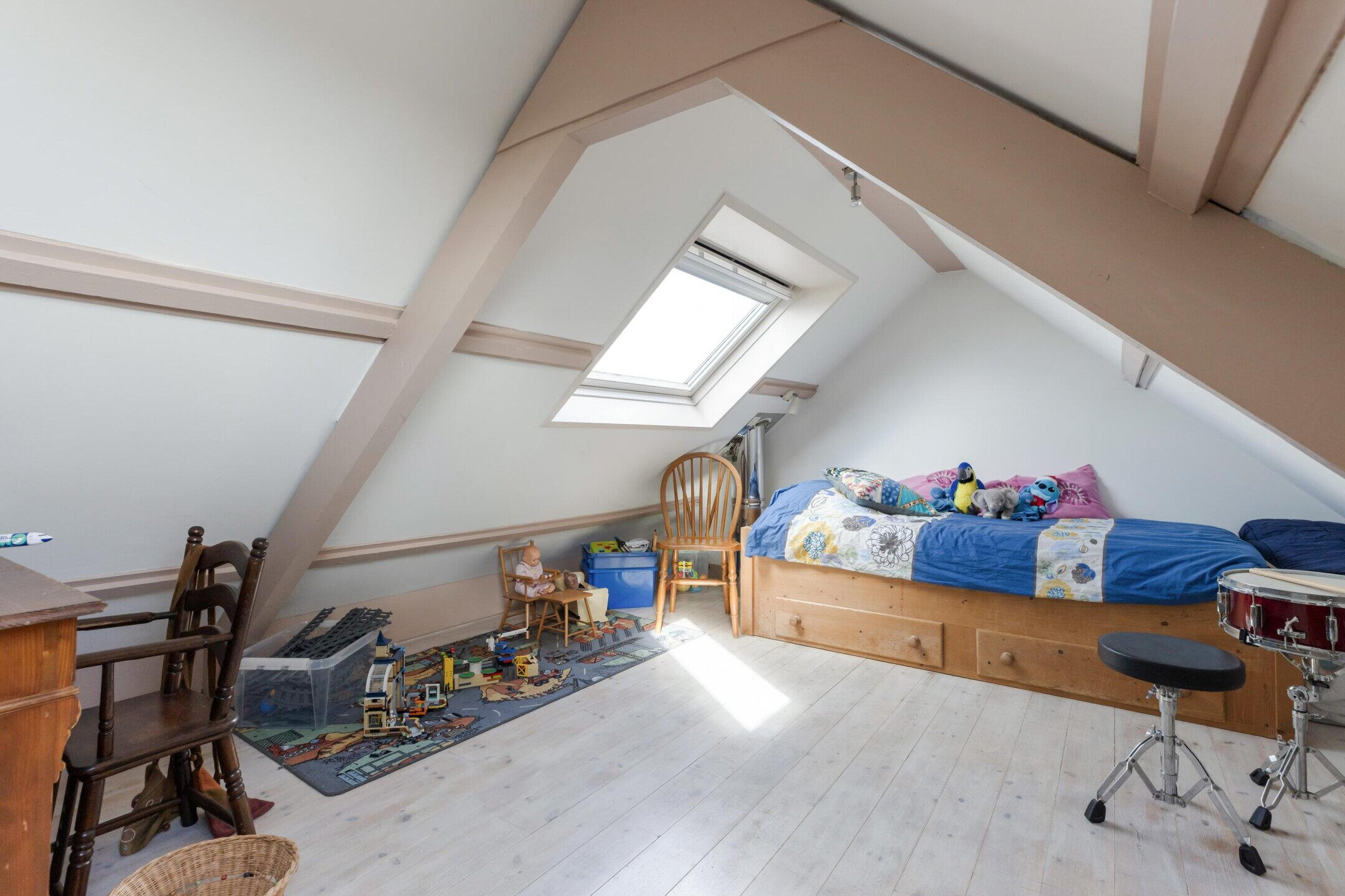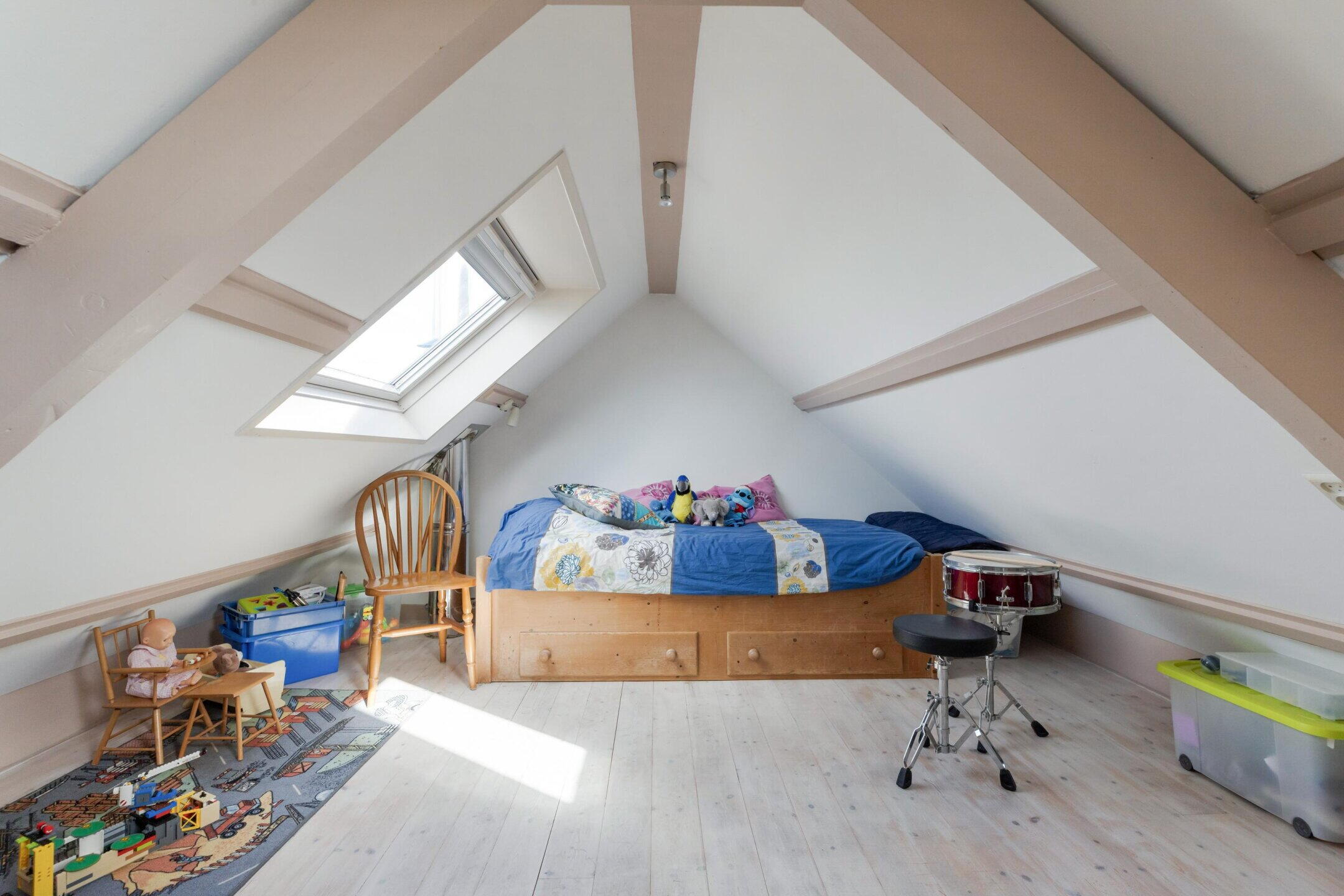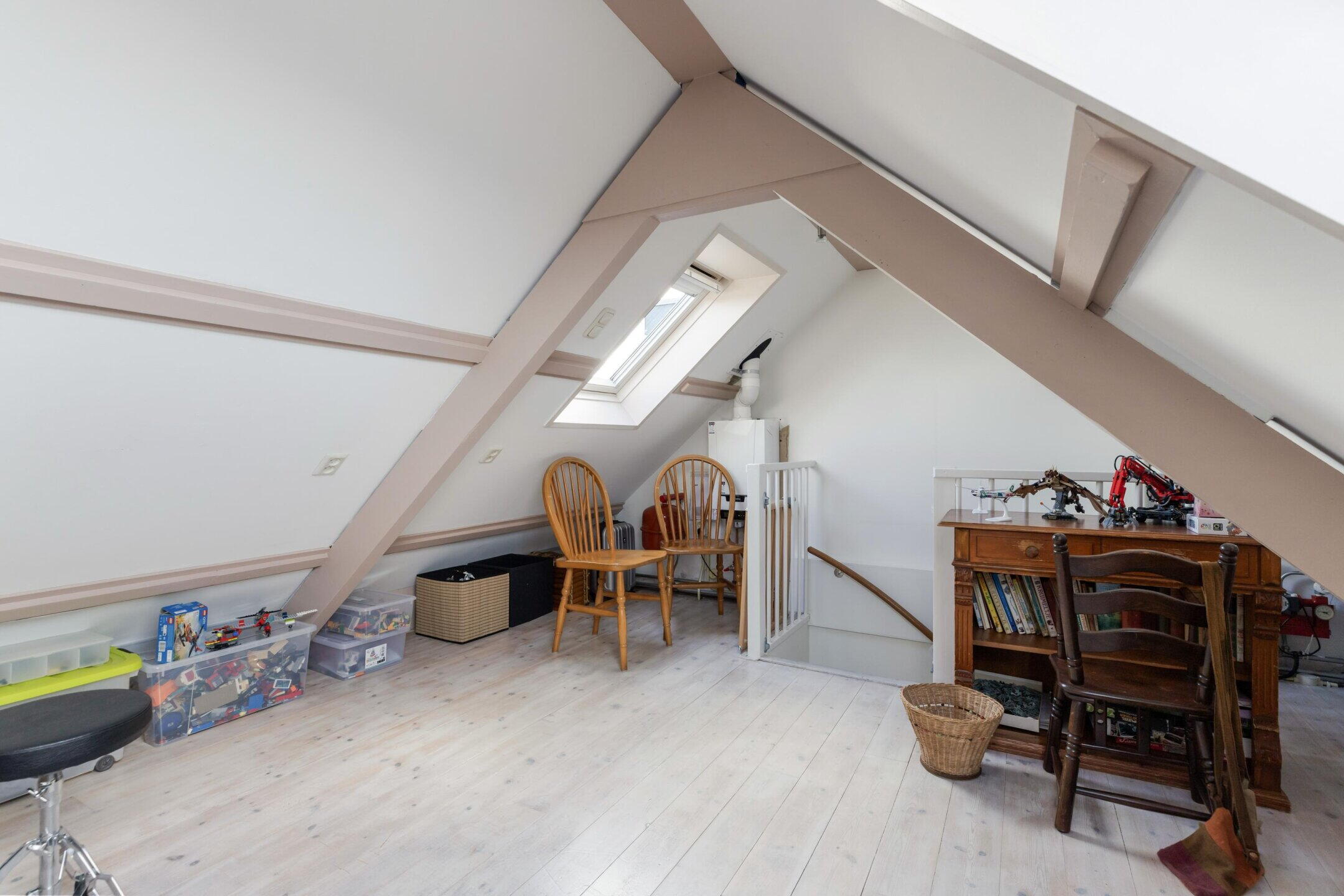 Op de zolderkamer (gemeten vanaf 1,50m. hoogte) bevinden zich dakramen aan voor- en achterzijde. Tevens is hier de opstelling van de combiketel gesitueerd.